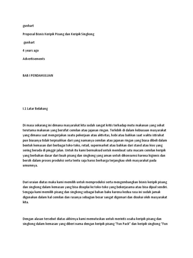 Proposal Usaha Keripik Pisang Proposal Usaha Keripik Pisang Kamis 06 Juni 2013 Bab I Pendahuluan 1 1 Latar Belakang Kondisi Ekonomi Di Jaman Course Hero from www.coursehero.com Mencakup semua data perusahaan/ badan usaha kamu yang meliputi nama perusahaan, jenis usaha, lokasi, dan riwayatnya. Perum harvest city blok of20/15 cileungsi bogor. Proposal seni budaya seni musik bab i pendahuluan a. Kegiatan ini merupakan salah satu acara tahunan yang di laksanakan di smk n 2 wonosari. Contoh proposal usaha keripik from image.slidesharecdn.com. Contoh ppt bisnis plan makanan ringan barisan proposal usaha keripik pisang coklat berbagi singkong pigura kulit sale. Kewirausahaan | contoh proposal usaha. Pesaing produksi keripik pisang saat ini berkisar ada …….